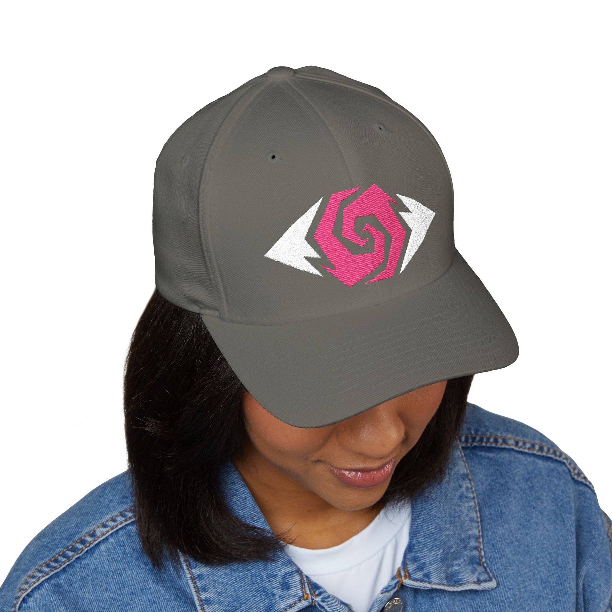 - Mid-profile design with low-profile embroidery area